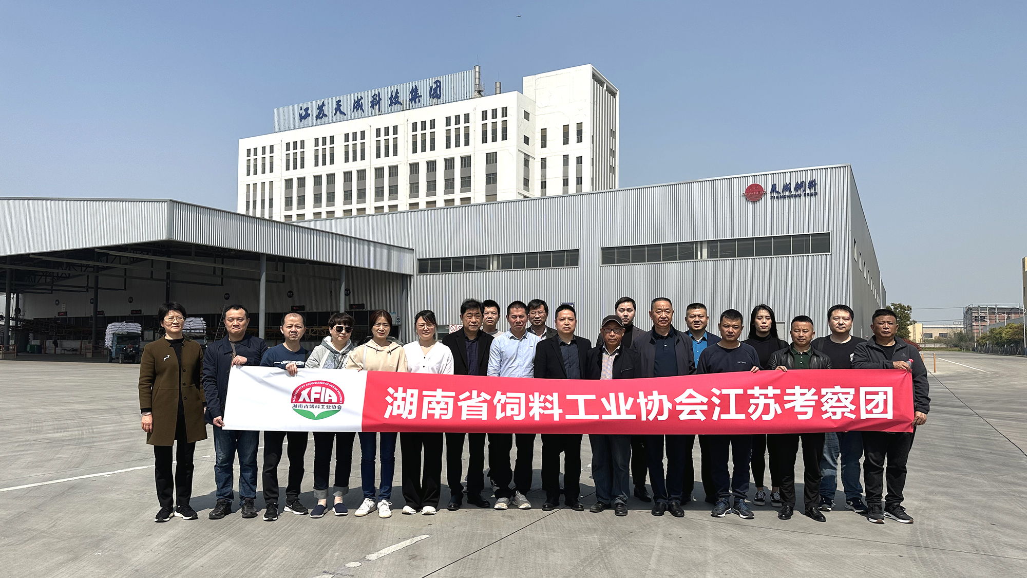 3月28日,湖南省饲料工业协会江苏考察团一行20人到天成集团考察交流,集团技术总监谢志华、南通饲料公司副总经理焦宏俊陪同参观。