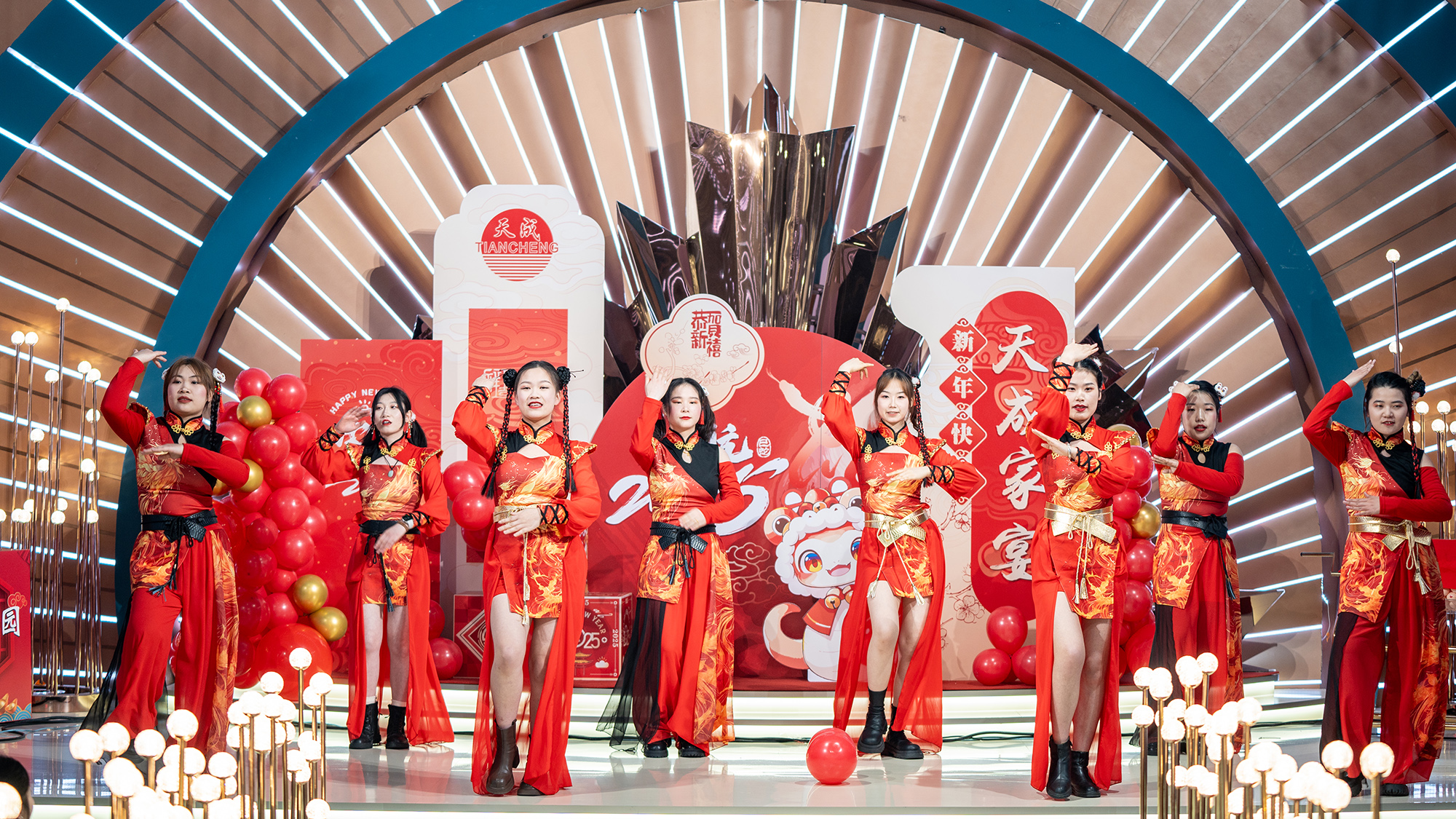 随着盐城公司带来的舞蹈串烧《热情似火》现场欢呼声此起彼伏,将晚会的欢乐气氛推向了高潮。夜幕降临,天成集团年会盛典圆满落下帷幕。这不仅仅是一场联谊盛会,更是天成家人们团结一心、共创未来的宣言。展望未来,天成集团将秉持初心,持续创新,以更加饱满的热情和坚定的步伐,向着更高更远的目标迈进。