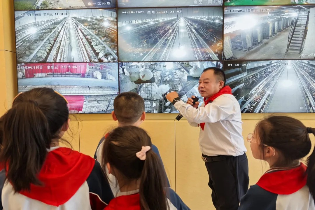 “企业在振兴乡村的道路上实施了哪些举措?”“如何在发展中保护乡村环境?”面对队员们的提问,李叔叔耐心解答,天晟牧园依托现代、高效的种鸡繁育技术,带动成百上千家养殖户走上了致富道路。针对环保问题,企业引进最新技术,将鸡粪转化为有机肥料,实现“养殖—肥料—种植”循环农业闭环,让乡村既有“金山银山”,又有“绿水青山”。
